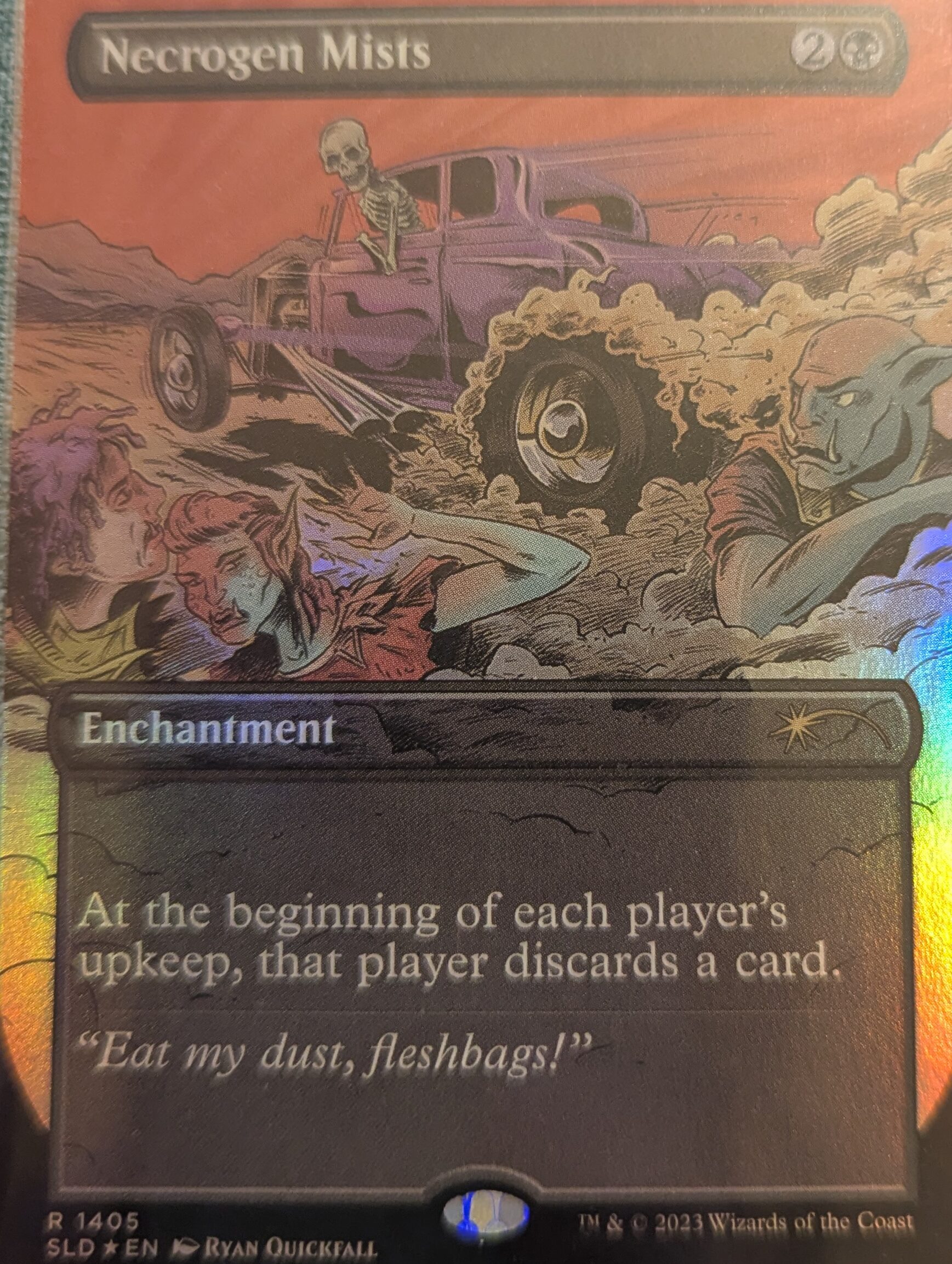 Cataclysm reads “Each player chooses from the permanents he or she controls an artifact, a creature, an enchantment, and a land and sacrifices the rest”. The keen reader will already be going wait that’s so busted here. You see all this deck truly needs to operate is a discard outlet, Greasefang, and a vehicle in the graveyard. In other words, one creature, and one enchantment. This puts us far ahead other decks who rely on having more of a board presence or more mana to work with.